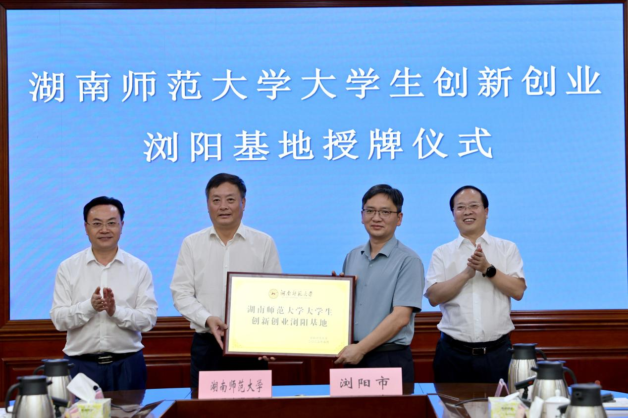 王辉为我校大学生创新创业浏阳基地授牌。