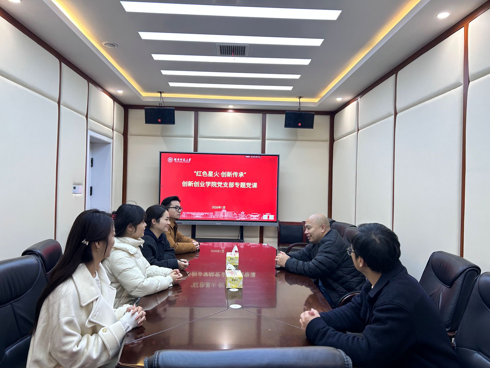 支部在陈列馆会议室召开专题学习会。支部书记朱浩浩同志讲授专题党课,以新民学会历史为主线,生动讲述了早期共产党人坚守理想、立足实践、传承精神的光辉事迹,引导党员深刻感悟“心怀天下、敢为人先”的格局与担当。与会人员结合所见所学,围绕如何将先辈精神转化为推动创新创业教育工作的实际行动进行了交流研讨。大家纷纷表示,要从党史中汲取智慧,立足本职贡献力量。
