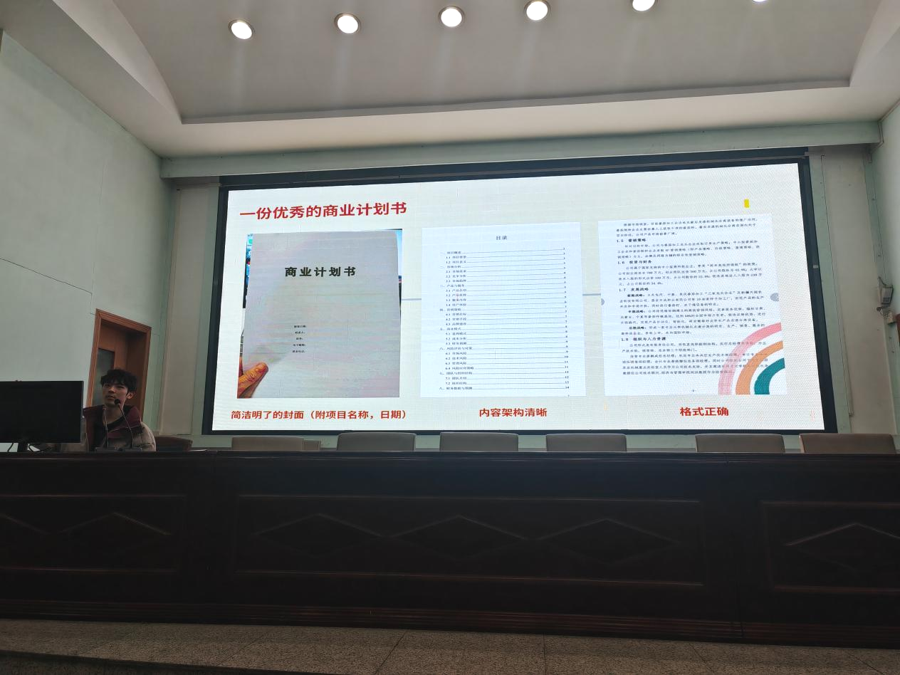 张蝶老师结合自身参赛经历,分享了将课程作业转化为竞赛项目、由创意构想到正式申报的实践路径。她勉励同学们充分利用课余时间和寒假阶段,积极开展前期调研与材料准备,在反复实践中提升创新意识与综合能力,持续参与高水平创新创业竞赛。