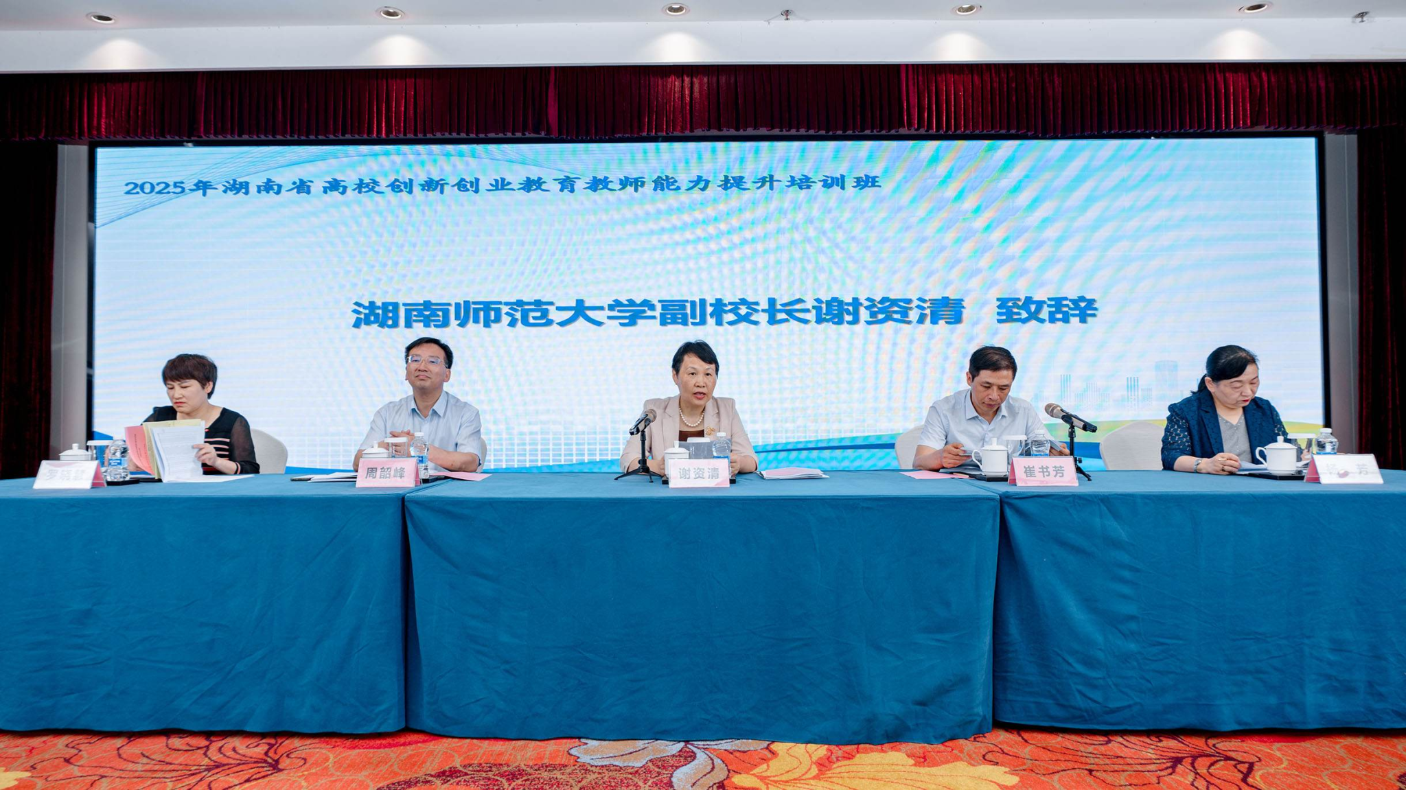 (供稿 高等学校师资培训中心)6月10日至12日,由湖南省教育厅主办、我校高等学校师资培训中心承办的“2025年湖南省高校创新创业教育教师能力提升培训班”在长沙举办。我校副校长谢资清教授出席开班仪式并致辞,湖南省教育厅教师工作与师范教育处处长崔书芳、学生处处长周韶峰、中南大学国家创新创业示范基地主任杨芳研究员等领导专家出席开班仪式。仪式由高等学校师资培训中心常务副主任罗晓慧主持。本期培训班聚焦高校创新创...